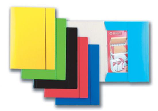 Pevný karton z vnější strany lesklý. Prolisy na chlopních a hřbetu zvyšují kapacitu pro uložení objemnějších dokumentů. Prodejní jednotka: 1 ks