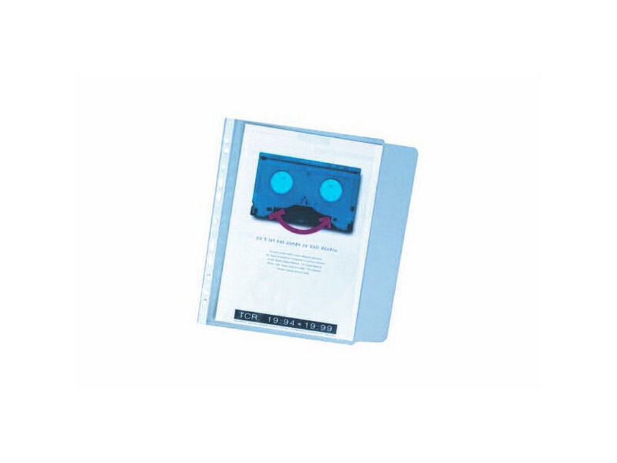 Průhledný matný obal, boční strana otevřená, opatřená vpravo klopou, materiál polypropylen orange peel, euroděrování.